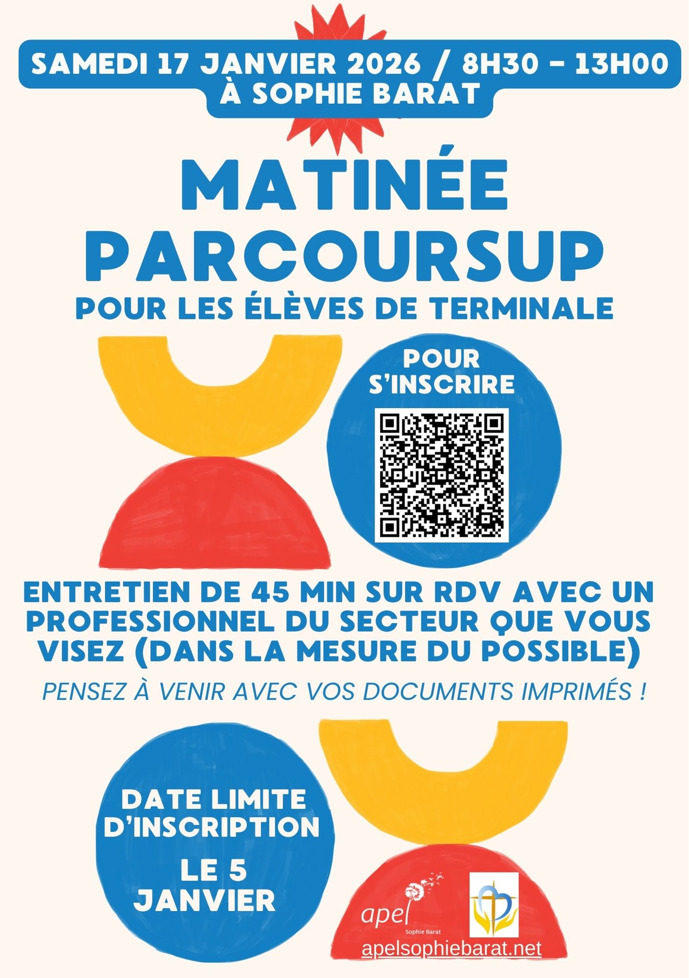 Une matinée Parcoursup est organisée le samedi 17 janvier 2026 à destination des élèves de terminale.